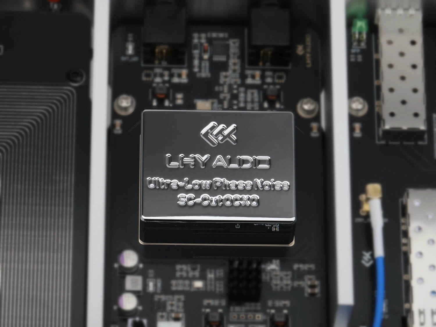 - Izolačná komora OCXO - oscilátor je fyzicky odizolovaný od zvyšku elektroniky v samostatnej hliníkovej komore. Chráni ho pred teplom, vibráciami aj elektromagnetickým rušením z okolia.