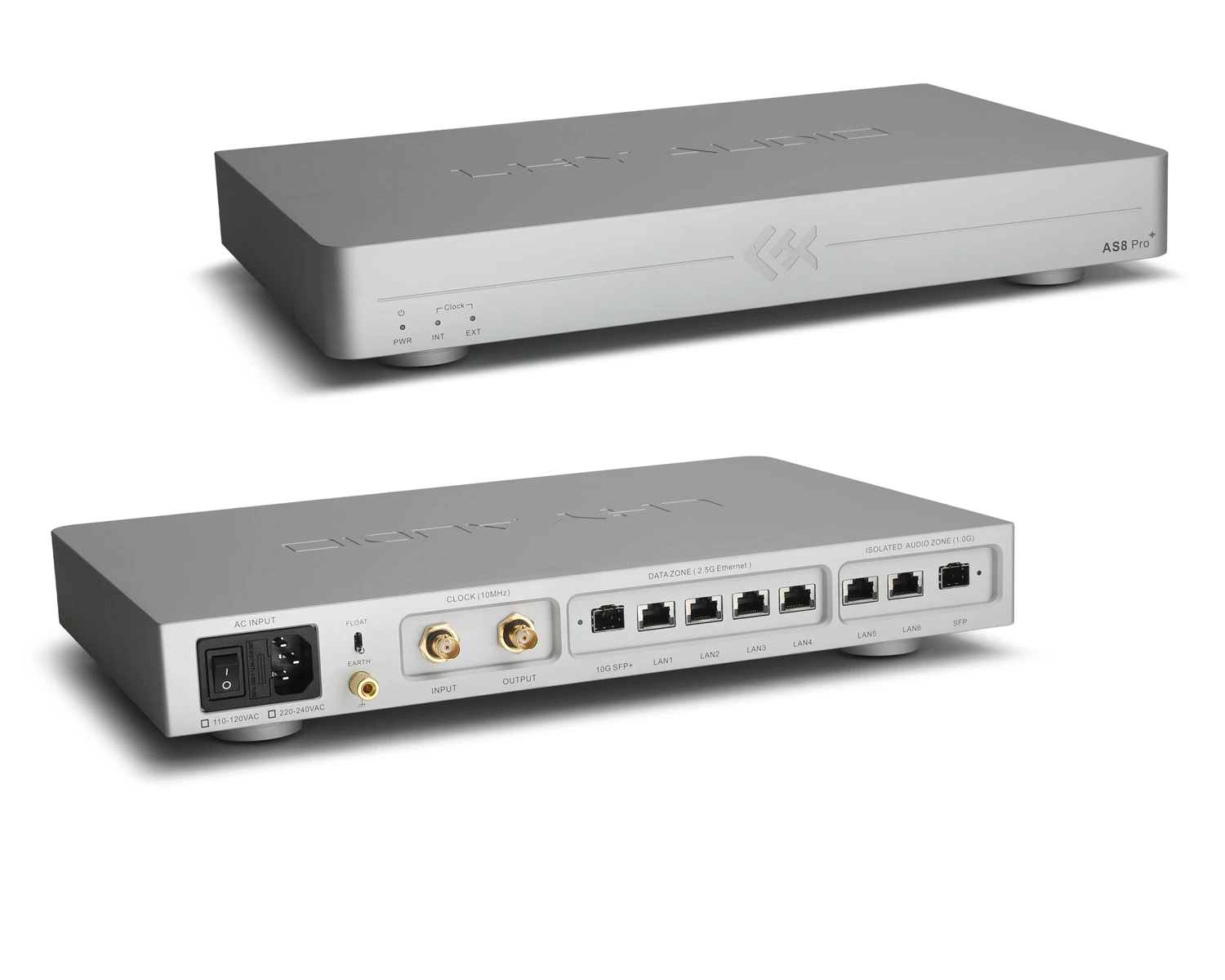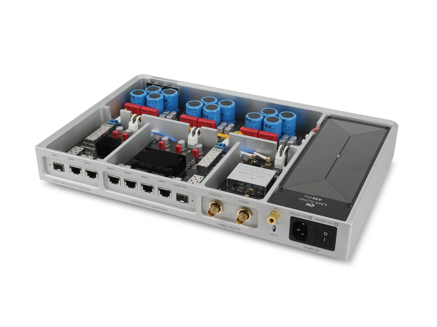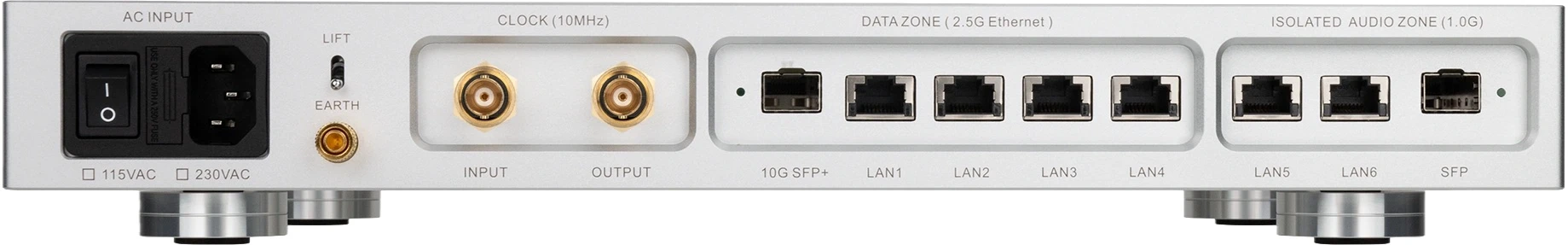 Sieťový šum do audio systému nepatrí – a AS8 Pro+ zabezpečí, aby sa tam nikdy nedostal. Prístroj využíva unikátnu architektúru vnútornej optickej izolácie, ktorá rozdeľuje switch na dve nezávislé domény: hlavnú 2.5G dátovú zónu a izolovanú 1G audio zónu.