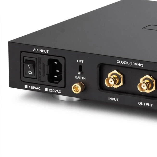 - Pozlátený zemniaci terminál s prepínačom - umožňuje pripojiť prístroj k dedikovanému uzemneniu a eliminovať AC zemné slučky, ktoré sú jedným z najčastejších zdrojov šumu v digitálnych zostavách.