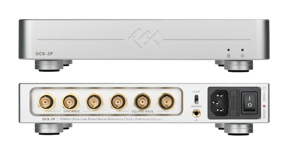 Referenčné externé systémové hodiny Nástupca obľúbeného modelu OCK-2S prichádza s vylepšeným OCXO oscilátorom (-115 dBc @1 Hz)dvojstupňovou reguláciou napájania30 VA transformátorom Noratel a päťkomorovým CNC šasi s termoizolovanou komorou pre OCXO. Zariadenie disponuje 6 nezávislými výstupmi (3× obdĺžnikový signál – square wave3× sínusový signál – sine wave) s distribúciou hodinového signálu s ultra nízkym prídavným fázovým šumomPrepínateľné uzemnenie zabezpečuje optimálne začlenenie do zostavy. Výsledkom je počuteľne stabilnejšia zvuková scénapresnejšie priestorové zobrazenielepšie rozlíšenie mikrodetailov a „tmavšie“ pozadie medzi tónmi.