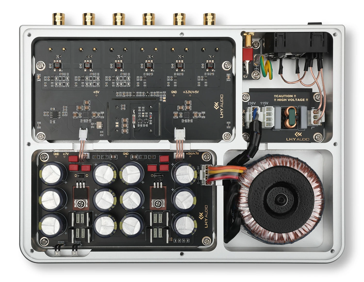 Ešte zaujímavejšie je to pri zapojení viacerých zariadení na jeden externý zdroj hodín. Keď streamer aj hifi switch (napríklad LHY Audio AS8 Pro / AS8 Pro+ / AS6) pracujú synchronizovane z toho istého referenčného zdroja, odpadajú vzájomné odchýlky v časovaní medzi zariadeniami. Dáta prichádzajú do DAC s konzistentným, presným taktovaním v celom reťazci. Výsledok? Zvuková scéna získa na koherencii a stabilite, ktorú interné oscilátory jednotlivých zariadení jednoducho nedokážu poskytnúť.