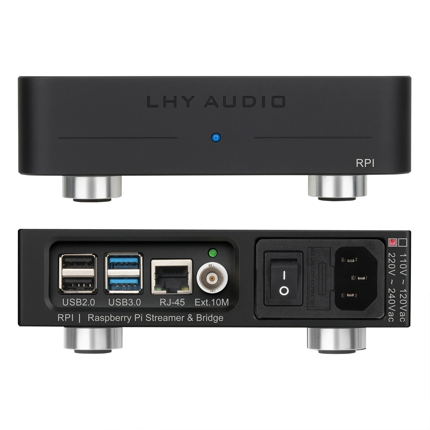 LHY Audio RPI je audiofilský sieťový prehrávač / streamer postavený na platforme Raspberry Pi 4 Model B. Je vybavený vlastným lineárnym napájacím zdrojom s Talema toroidným transformátorom a vysoko presnými OCXO systémovými hodinami (teplotne kompenzovaný kryštálový oscilátor) s PLL. LHY Audio RPI funguje ako Roon Bridge, HQPlayer NAA alebo UPnP/DLNA streamer - stačí ho prepojiť USB káblom s vaším DAC prevodníkom a v priebehu pár minút môžete počúvať alebo streamovať na DAC svoju obľúbenú hudbu. Obsahuje microSD kartu s predinštalovaným systémom Ropieee. Podporuje aj systémy Moode Audio a Volumio.
