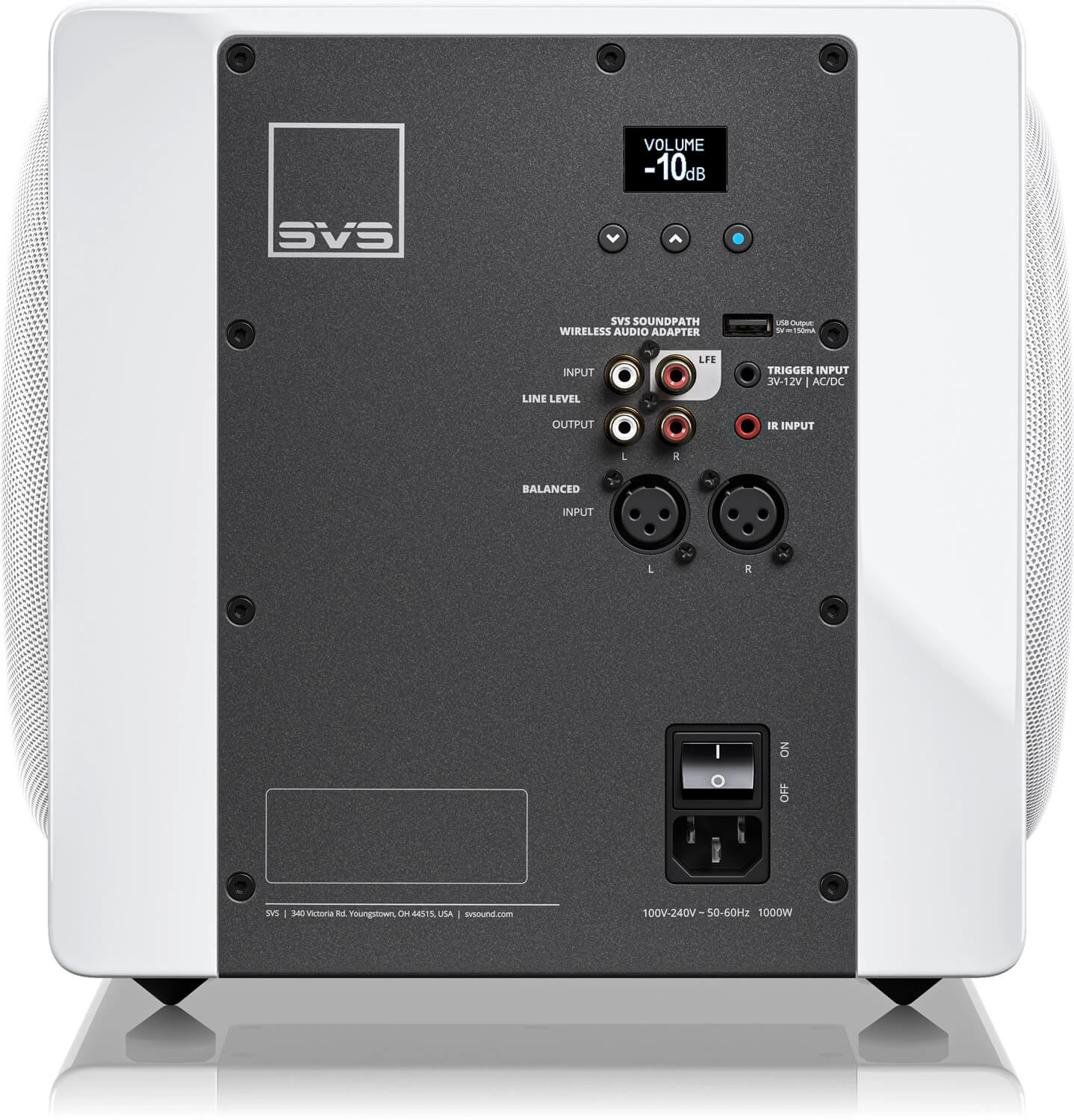 • USB výstup (5V) - napájanie pre voliteľný SVS SoundPath Wireless Audio Adapter (bezdrôtový prenos audio signálu)